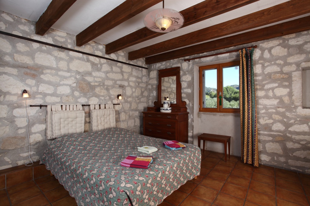 The Green Bedroom On the first floor, a big bedroom with a double bed (size 160 cm) and a separated bathroom Nice view on the “Alpilles” and olive trees Reversible air conditioning Free WIFI Green Bedroom Image 2 of 3
