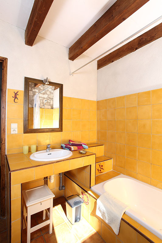 The Yellow Bedroom On the first floor, a big bright bedroom with a southern exposure. A double bed (size 160 cm) and bunk beds (90 x 190 cm) with a separated bathroom. Reversible air conditioning. Free WIFI Yellow Bedroom Image 5 of 5